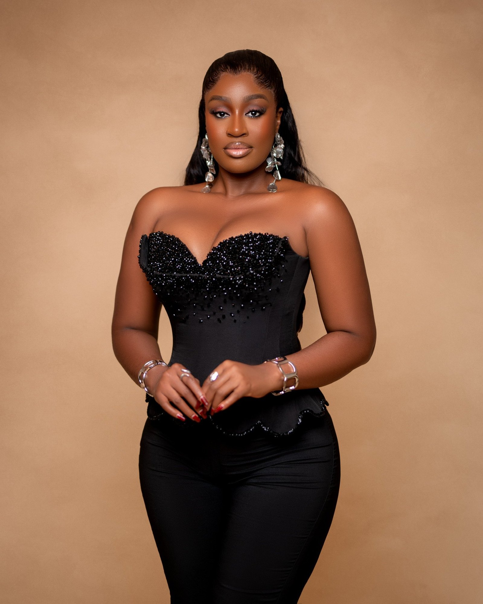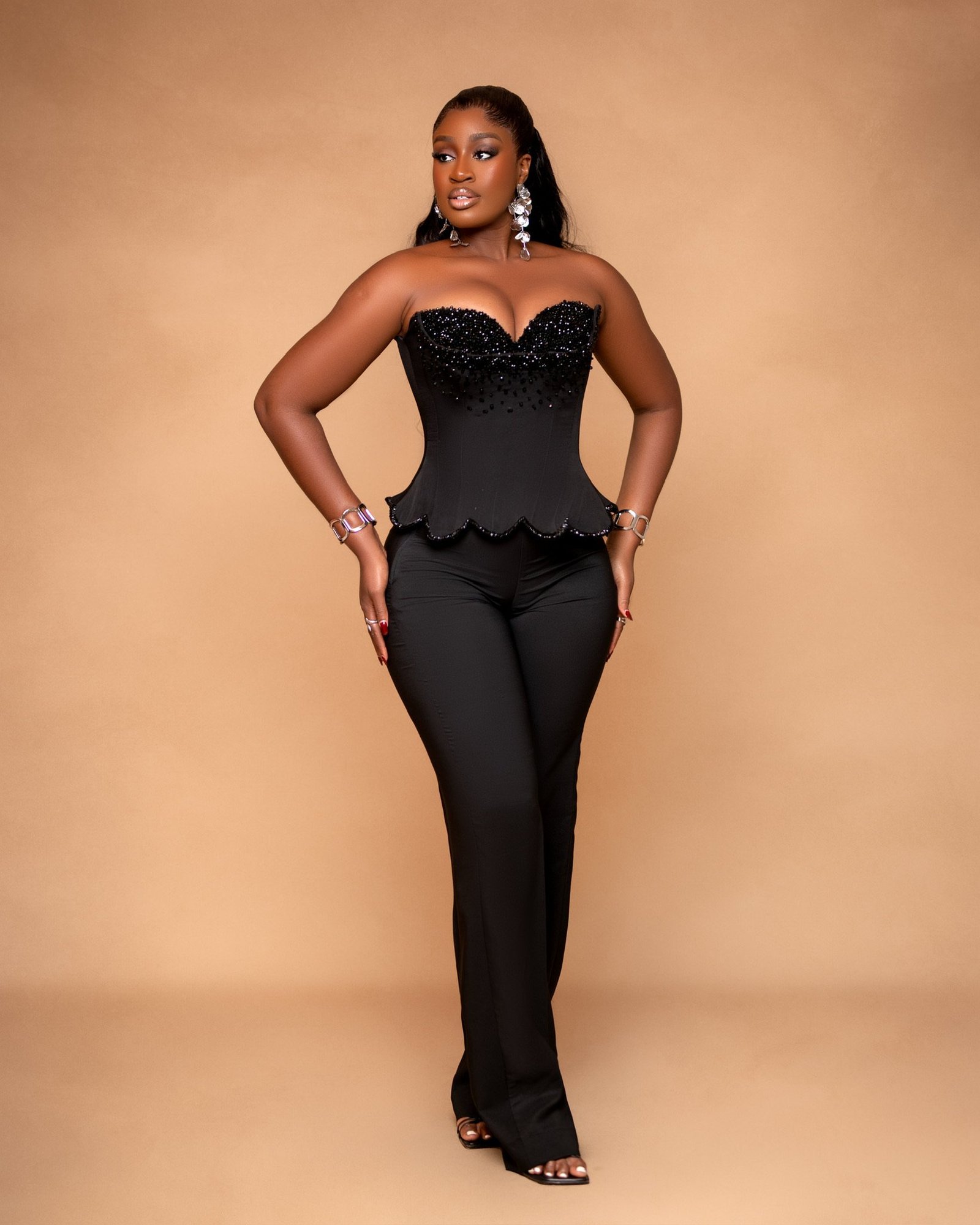 The Aries Set pairs a hand-beaded corset top with sleek, structured crepe pants for a striking silhouette. With no stretch, every line is intentional — made to sculpt, not mold. Feminine. Fearless. Flawless.